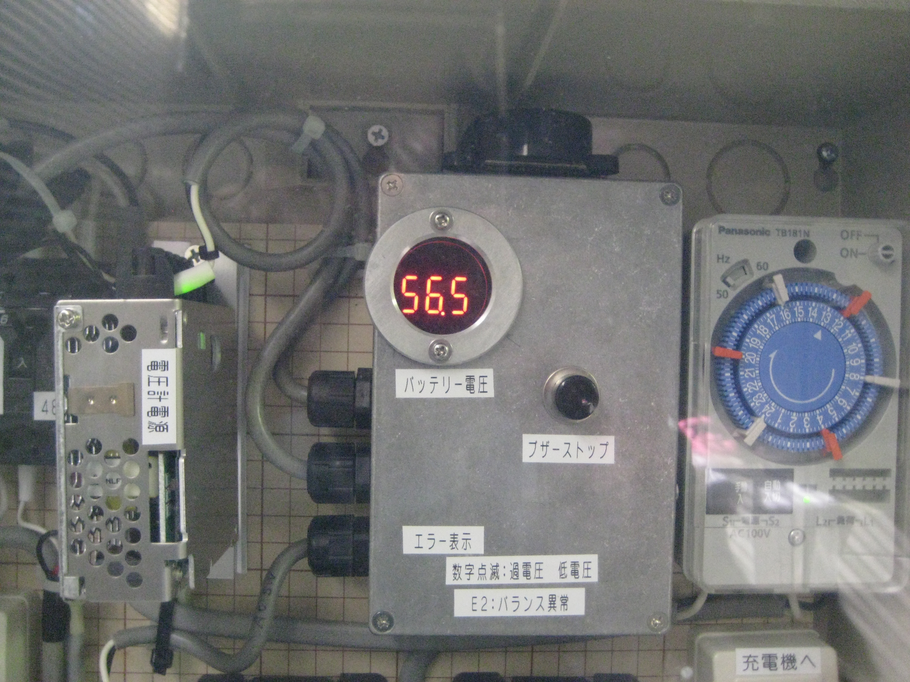 プログラム制御です。写真は電圧を監視し、ある値より下がると機器の電源を 投入するプログラムを施したコントローラです。
